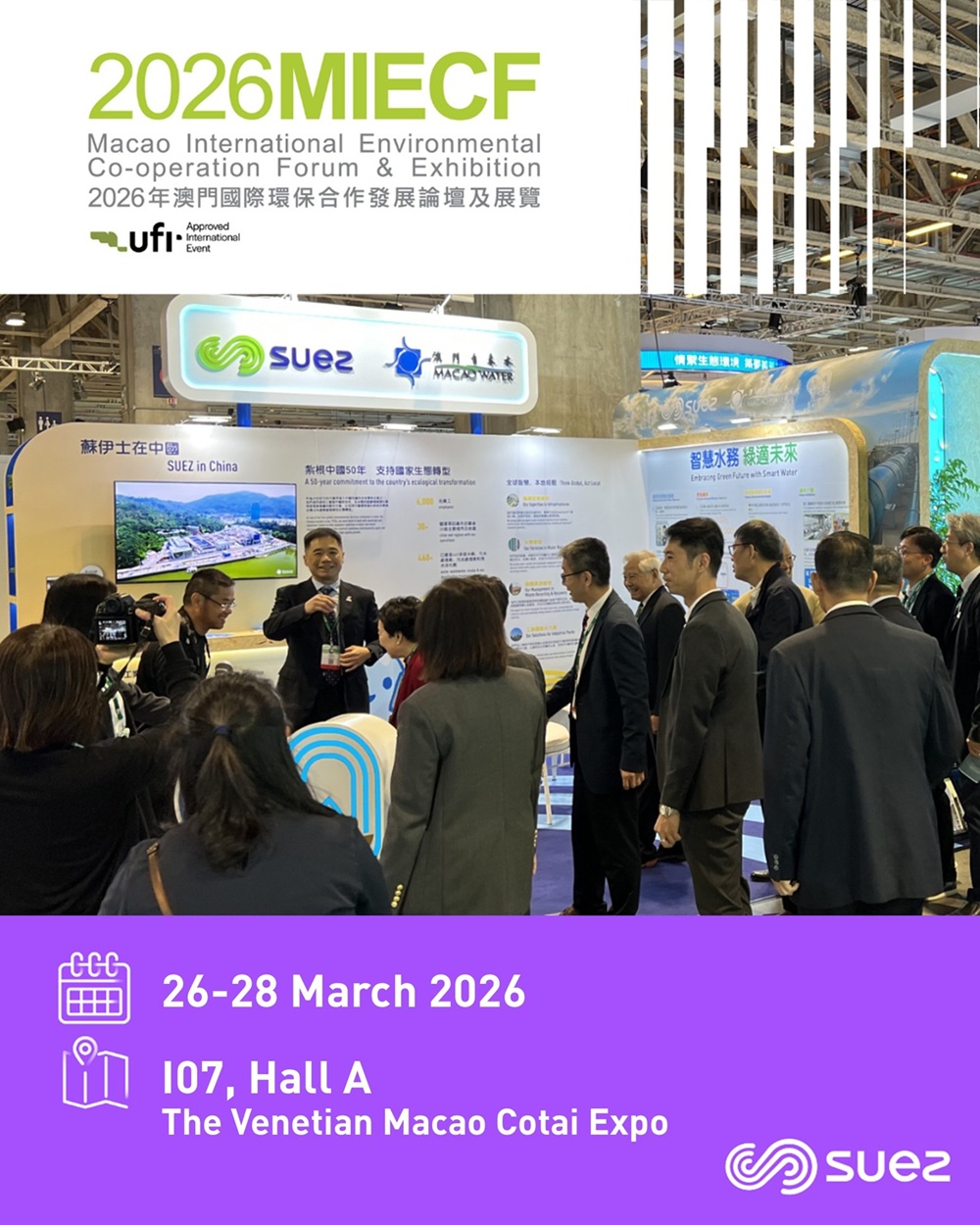 Visit the SUEZ Booth at I07, Hall A, where SUEZ, alongside its subsidiary Macao Water, will showcase its leadership in sustainability and innovation across the water and waste management sectors. Building on last year’s success, this year’s exhibition places a focus on Water Reuse and Smart Water Management. By highlighting our latest solutions and digital advancements, we will demonstrate how SUEZ is shaping the future of the industry and strengthening urban resilience with cutting-edge digital tools and smart solutions.