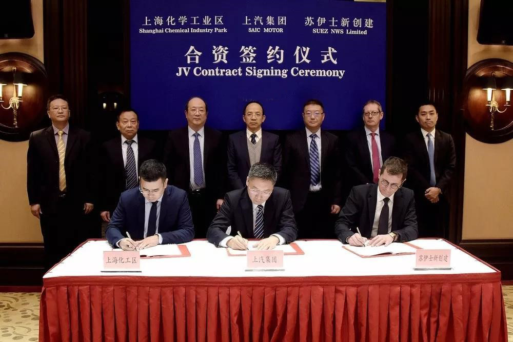苏伊士新创建与上海化学工业区、上海汽车集团股份有限公司举行合资签约仪式。