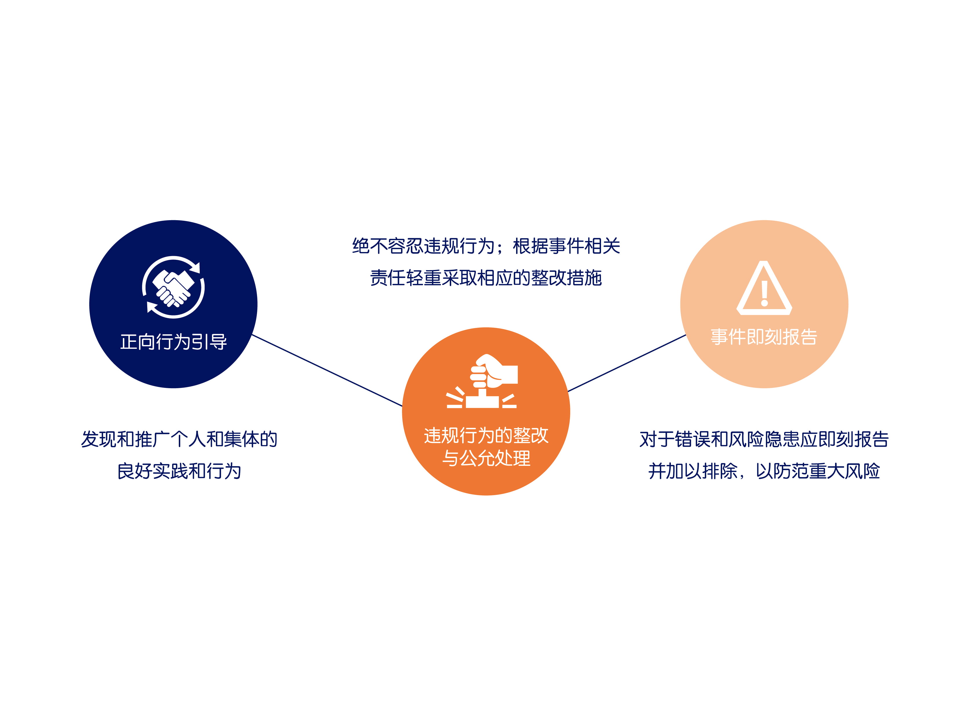 我们致力于培育员工健康与安全的信任感。这种信任感是吸引我们员工、合作伙伴、供应商、分包商参与的重要资本,以便在我们的业务开展中杜绝严重事故的发生。“公平文化“在实操中包含以下三方面的内容: