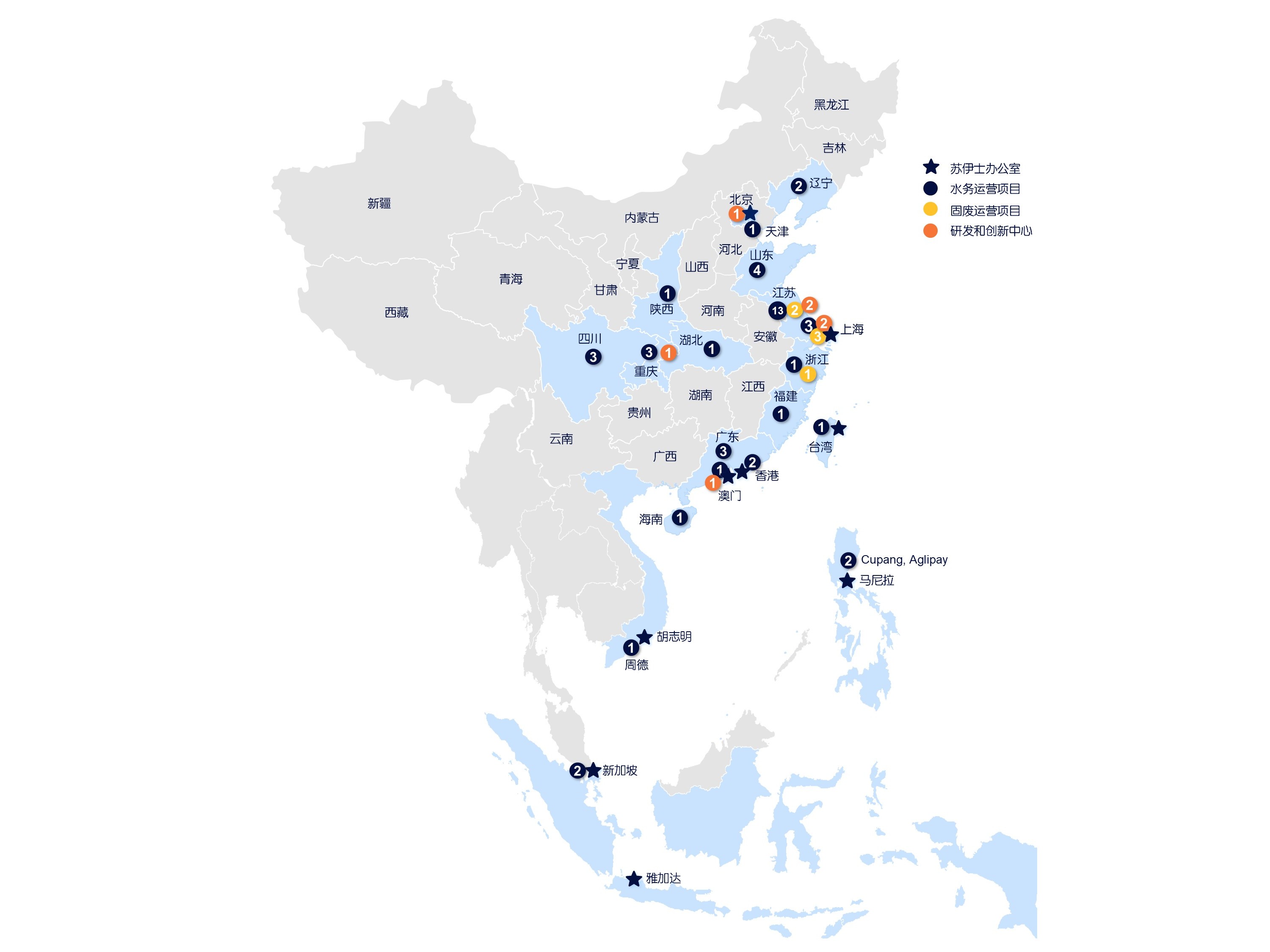 苏伊士约70年前进入亚洲市场,起步于东南亚,继而扩展至中国的发展也近50年。苏伊士在亚洲有逾6500名员工,已建成超过 600 座水厂和污水处理厂。集团与各地伙伴合作为逾2500万人和 23个工业园区提供水务和固废资源管理服务。