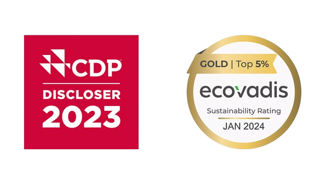 我们的努力成果在2024 年得到了全球领先的ESG1评估机构EcoVadis和CDP的认可。2024年1月,我们以77/100的成绩获得EcoVadis的金牌评级,同时在CDP的气候和水资源管理承诺方面也获得了双A-评级。